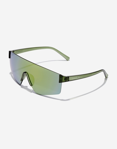 Diseño de gafas de sol estilo urban-sport que combina lente de máscara al aire con visión panorámica y puente nasal y varillas de TR90. Una silueta ligera y cómoda que recupera la esencia de los 2000 perfecta para marcar tendencia en el día a día o en tus Après Ski. Disponible en varios colores de lentes y monturas en acabados brillo y mate.
