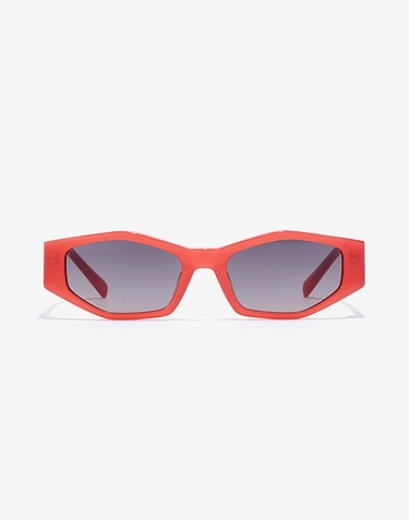 Modelo de forma estrecha y con dinámica geométrica que entra en contraposición con las anchas patillas dando lugar a un diseño de alto impacto. Estas gafas de sol en acetato coral tienen una forma disruptiva que sorprende a quien la mire.