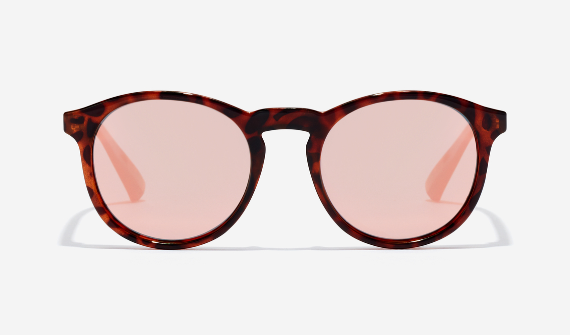 Montura redonda carey en acabado brillante y lentes rose gold.