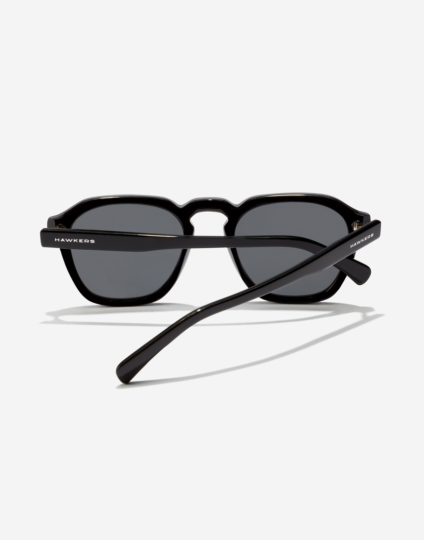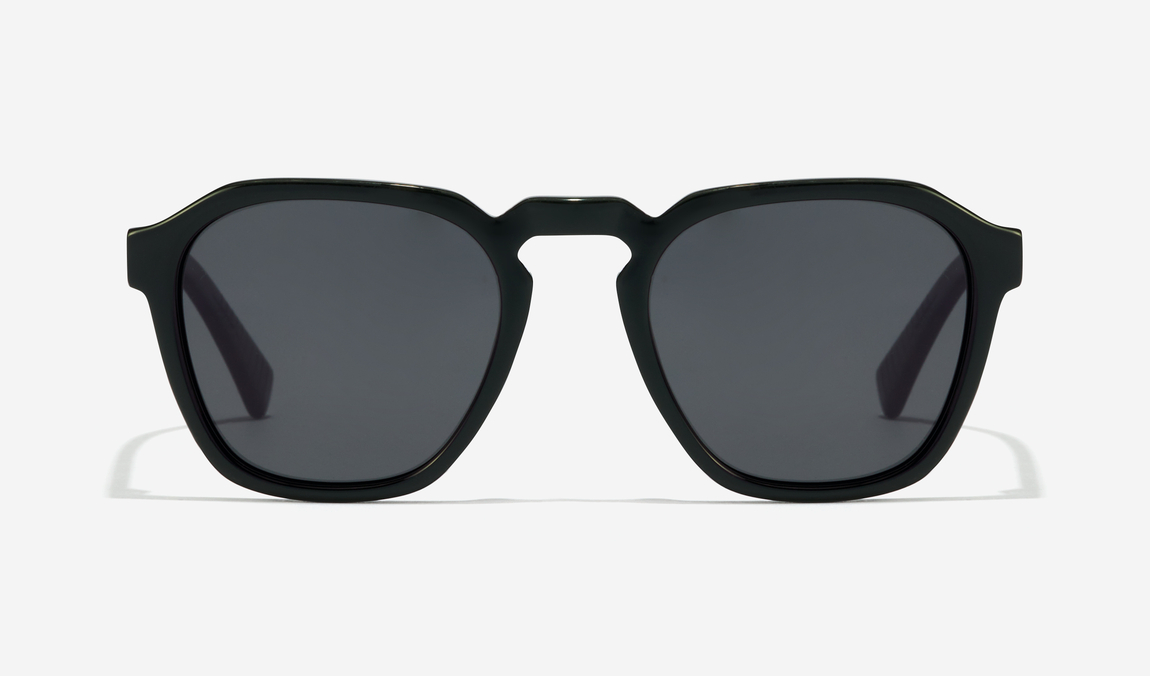 Diseño total black de estilo retro inspirado en la moda de los años 50. La montura de acetato crea una forma redondeada que se aplana en la parte superior y acentúa su forma en el puente aportándole mayor carácter a este diseño con lentes polarizadas.