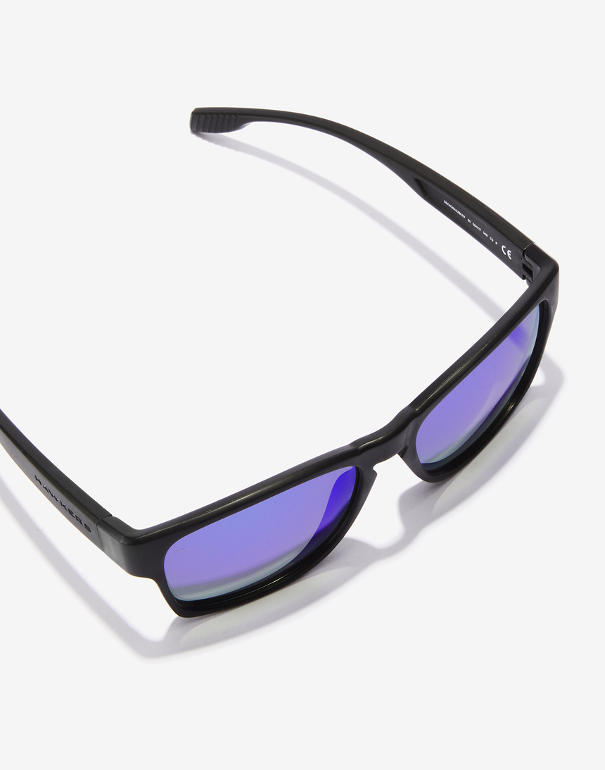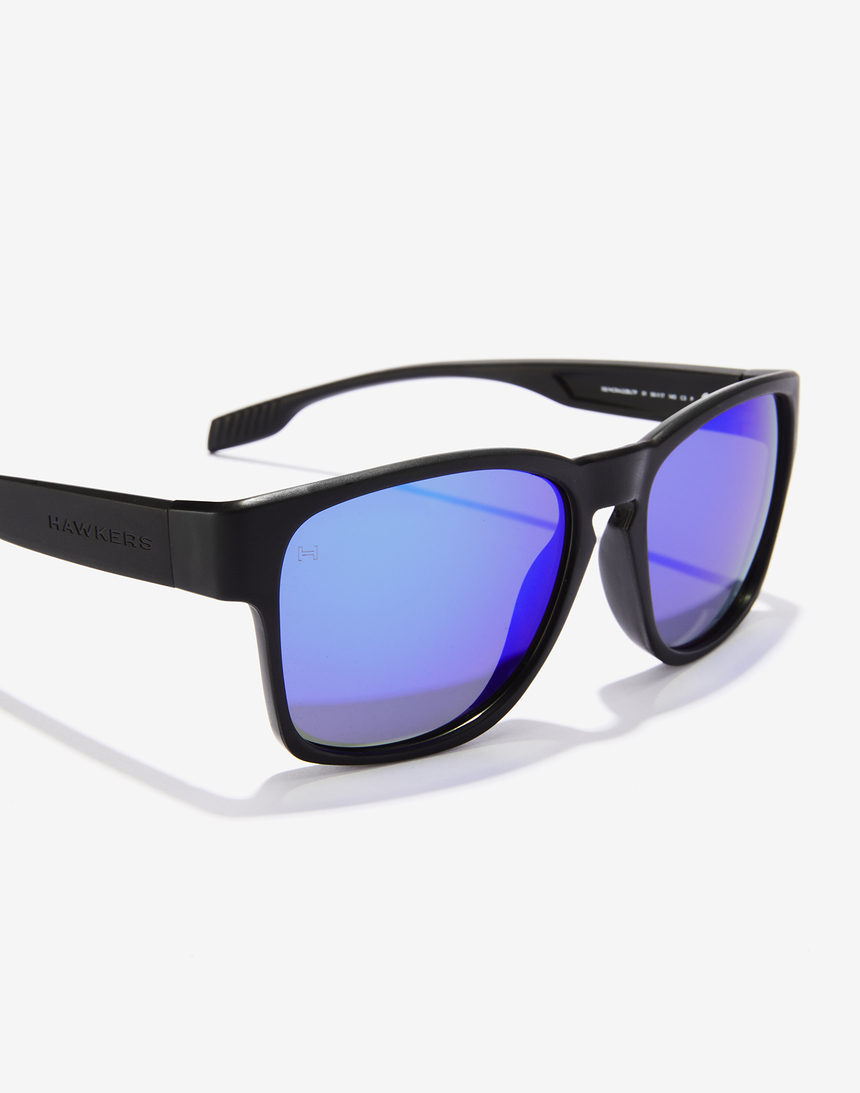 CORE es uno de nuestros diseños de estilo híbrido que fusiona sportswear y lifestyle. Este modelo, de la colección Made in Spain, combina montura negra mate con lentes POLARIZADAS de color azul y efecto espejo. La bisagra ligeramente situada ya entrada en la patilla proporciona una sensación envolvente.