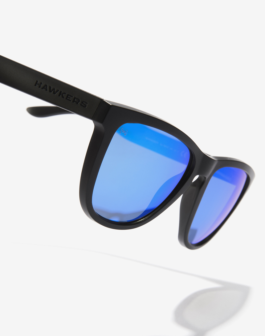 ONE es nuestro diseño más icónico de todos los tiempos. Este modelo, de la colección Made in Spain, combina una montura negra mate con lentes espejadas POLARIZADAS de color azul claro.