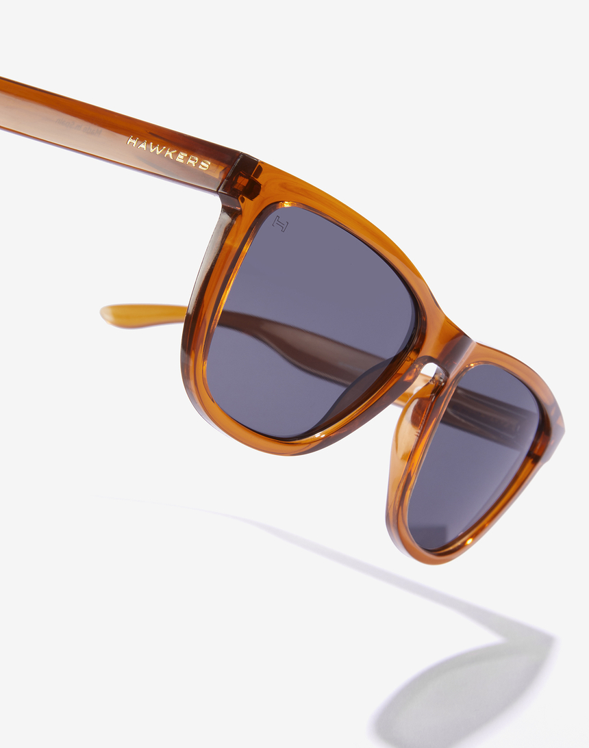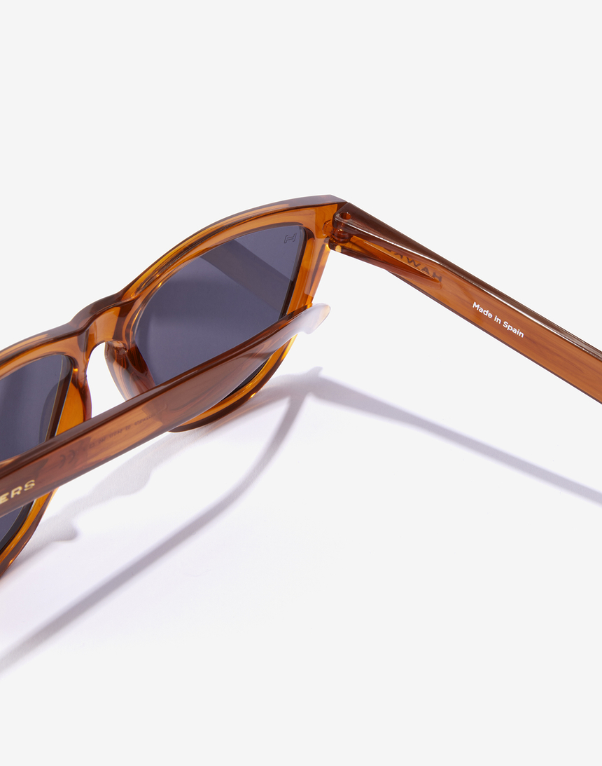 ONE es nuestro diseño más icónico de todos los tiempos. Este modelo, de la colección Made in Spain, combina montura pulida color caramelo transparente y lentes negras POLARIZADAS.