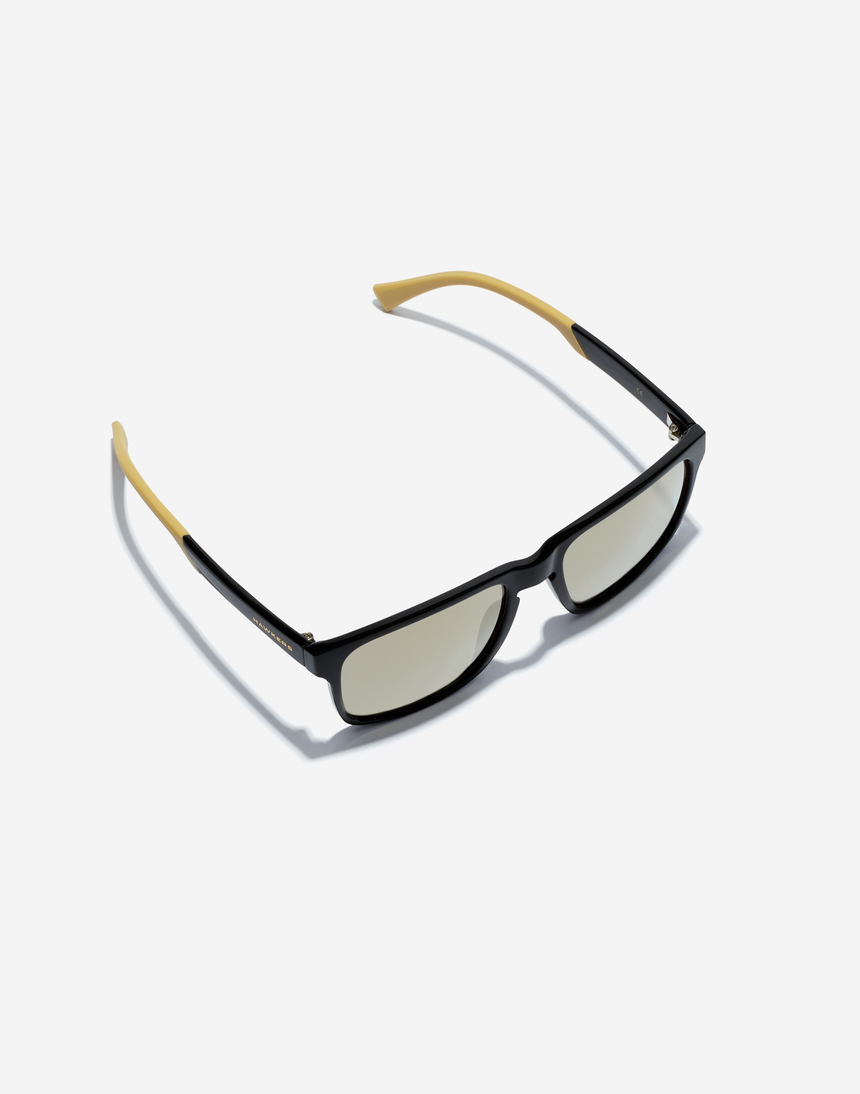 Peak fue diseñado para ser un modelo deportivo y urbano, combinando un frontal cuadrado clásico con varillas dinámicas de dos piezas ligeramente biseladas y contrastes de color y textura. Pero la combinación de colores de este modelo, con montura negra pulida, lentes beige espejadas y terminales de goma beige claro le añaden un carácter más elegante.