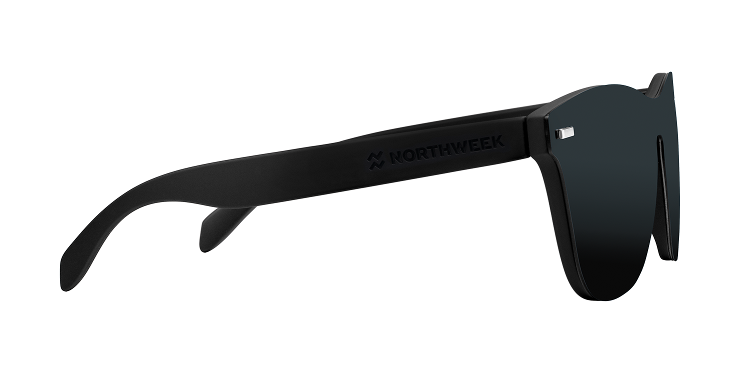 Explora el futuro con la colección Phantom. Nuevos modelos que combinan la tendencia de gafas de sol todo lente con la montura Wall y Regular, para crear una colección de estilo futurista que revolucionará los clásicos. El modelo Phantom Regular All Black combina montura negra en acabado mate y máscara frontal de lente negra. Las lentes polarizadas Northweek están fabricadas con Triacetato de Celulosa de origen alemán que aporta alta flexibilidad y protección UV400. Nuestras monturas de policarbonato de alta calidad se adaptan perfectamente al contorno facial y tienen una elevada durabilidad y resistencia.