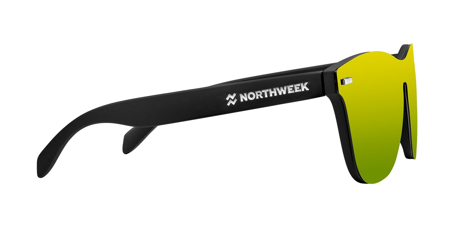 Explora el futuro con la colección Phantom. Nuevos modelos que combinan la tendencia de gafas de sol todo lente con la montura Wall y Regular, para crear una colección de estilo futurista que revolucionará los clásicos. El modelo Phantom Regular Corona combina montura negra en acabado mate y máscara frontal de lente dorada. Las lentes polarizadas Northweek están fabricadas con Triacetato de Celulosa de origen alemán que aporta alta flexibilidad y protección UV400. Nuestras monturas de policarbonato de alta calidad se adaptan perfectamente al contorno facial y tienen una elevada durabilidad y resistencia.